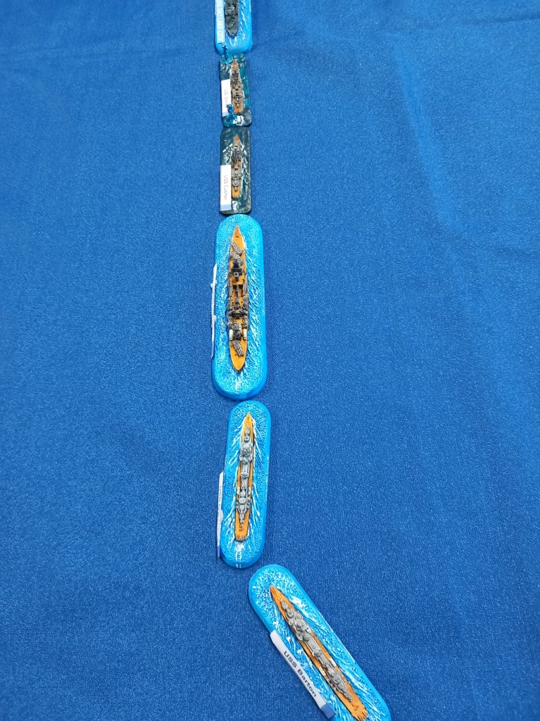 First up was the next in our Guadalcanal campaign, this one being what is known to history as ‘The First Battle of Guadalcanal’ A per our previous games the initial movements were plotted on gridded maps, adjudicated by the umpire, and once sightings had been made the task forces were deployed. Objectives were simple, the Japanese to get close enough to the opposite table edge to bombard Henderson Field and the Americans to stop them. The game was played at night so limited ranges and the rules, as usual, were Victory at Sea.