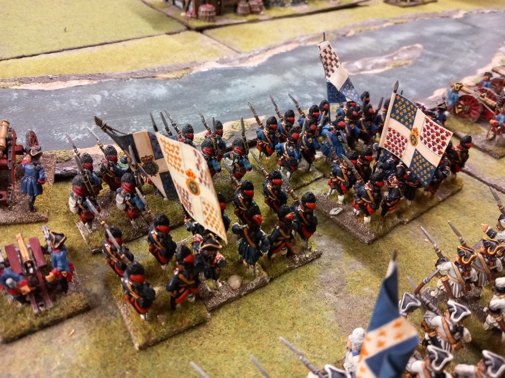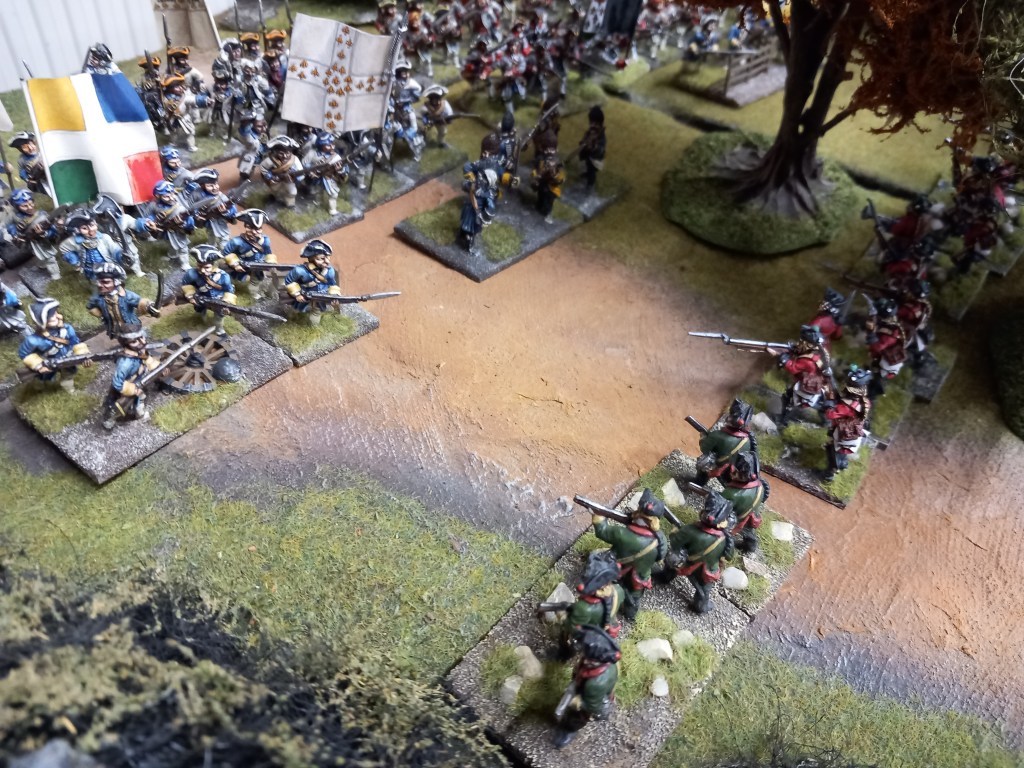 In time, and it seemed like forever to the French, their troops began to pierce the Hessian line although all semblance of order was gone and so individual battalions made headway while others fell back to rally and come again.