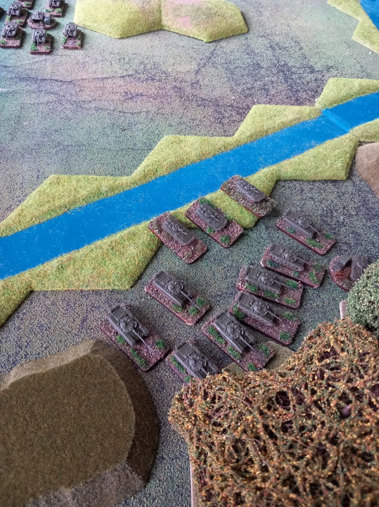 As we played on the Soviet player got more of a hang of using the terrain but his commands were still strung out across the table.