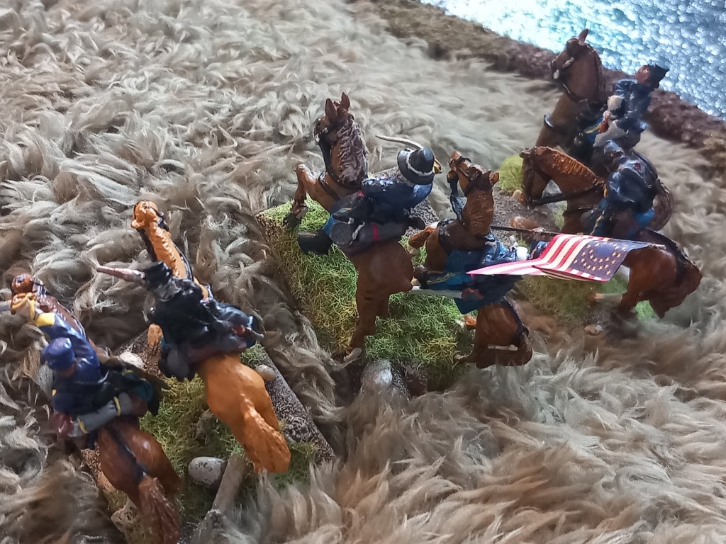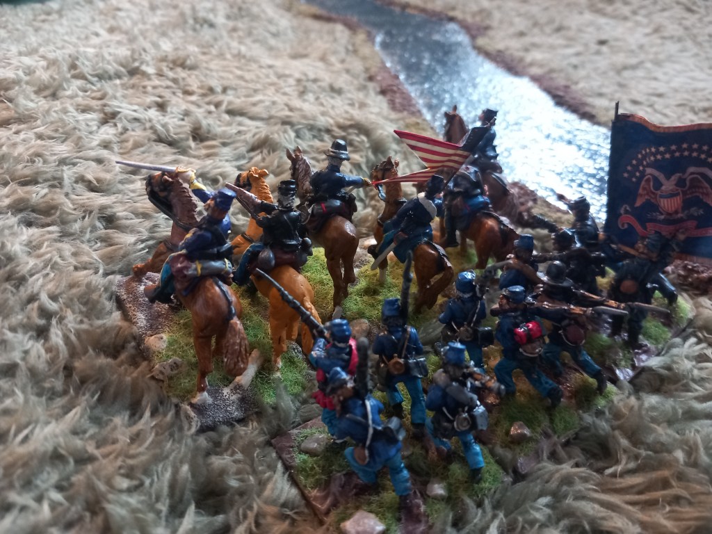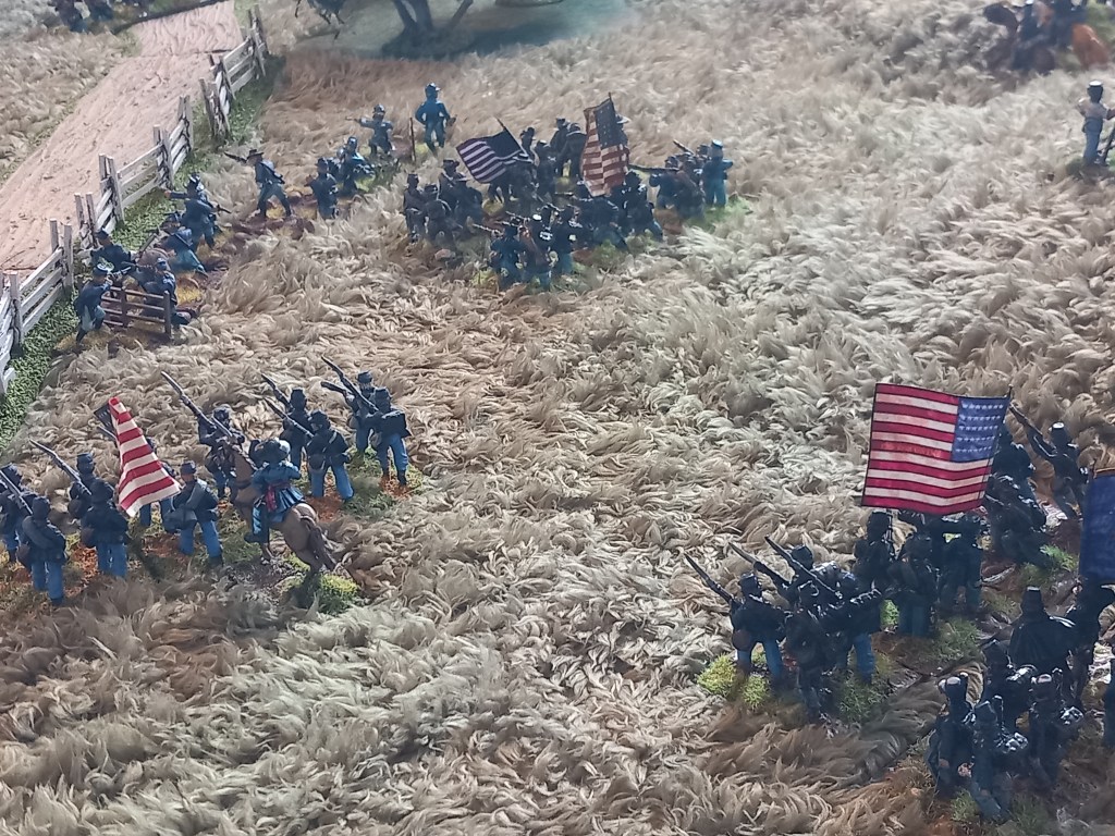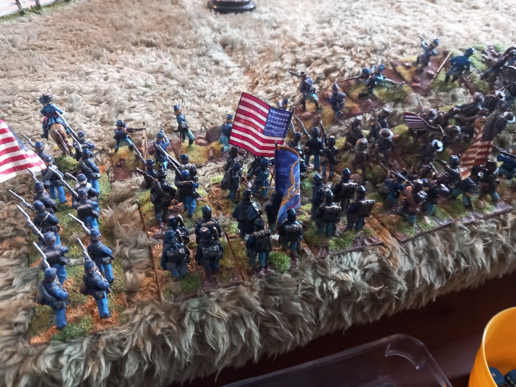 Our first game then featured two Union brigades attacking across a field and a stream against three confederate brigades with superior artillery. Why? Because that’s what the orders from division said to do 🙄