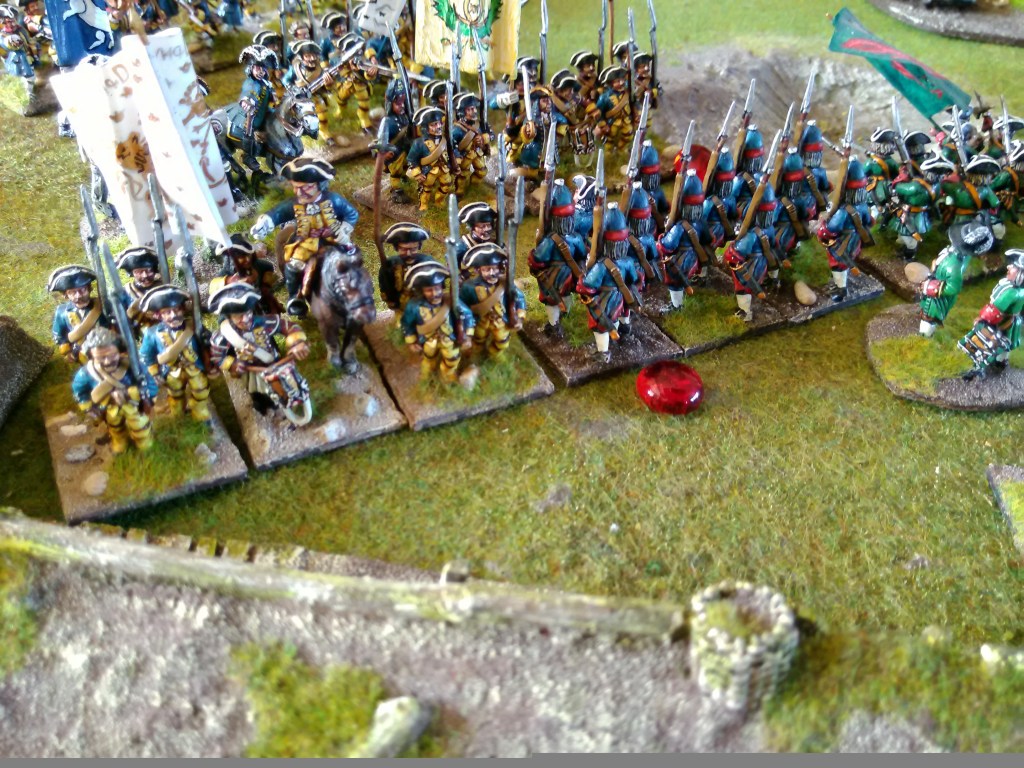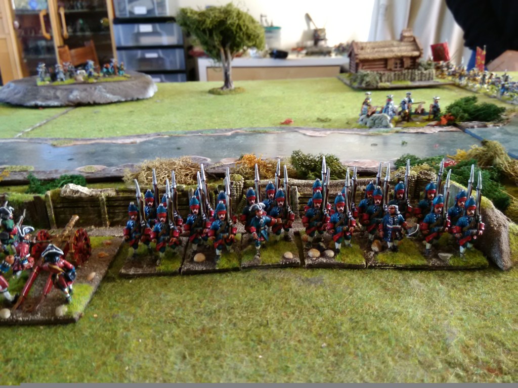 Back at the real battle ๐Ÿคฃ Charles and his brigade were definitely in and amongst the entrenchments facing off to a hastily constructed second line by Schweden which Chambers was extending out to the right effectively forming behind Illfland’s withdrawing dragoons – the size of Chambers brigade (9 battalions) made cohesion quite difficult in the space available and we could see why in the real thing they just faded into the woods.