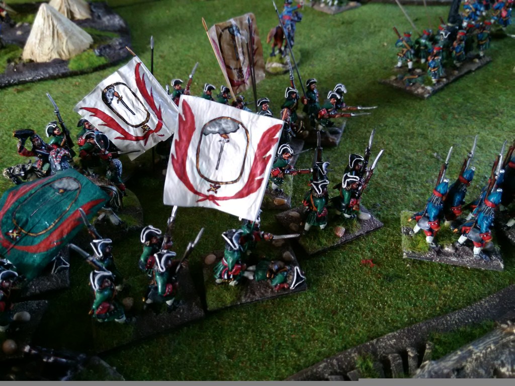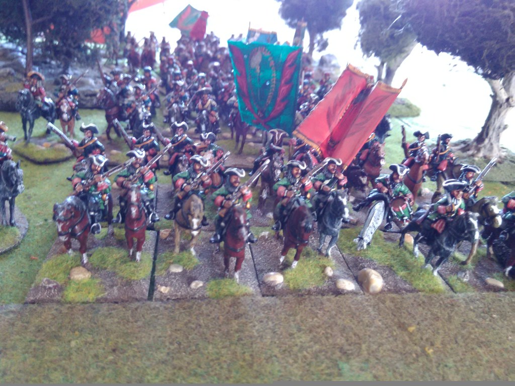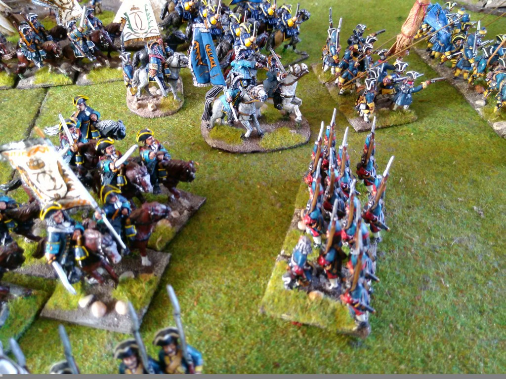While all this was happening Heinsk’s dragoons emerged from the woods, somewhat disorganised, but all they needed was a bit of a breather and they could catch Sparre by surprise. Even better was the emergence of the lead battalions of Renne’s infantry from their wood. It could all be saved!