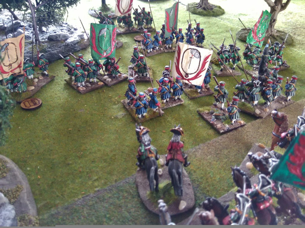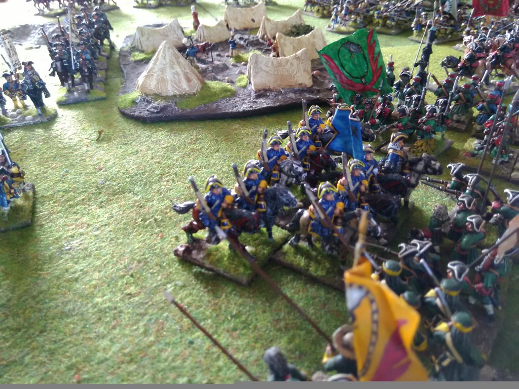 While the infantry slogged it out on one side of the camp Illflands dragoons advanced on Sparre’s infantry, who due to the terrain could only deploy two battalions abreast, but non the less Vasterboten forced Narvski back and slowly ground forward – the dragoons were never going to charge the Swedish infantry so it became a shooting match which for a while the dragoons did ok in but eventually legged it for the woods.