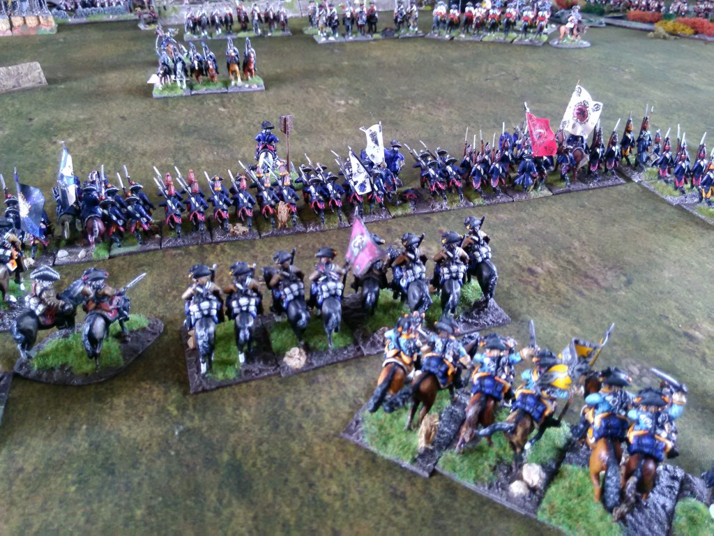 Despite overrunning the Austrian battery the Prussian cavalry were eventually seen off with serious losses – all three were at 50% by the end of the action when the Austrian cuirassiers joined the fight, but this was the signal for the main Prussian body to advance.
