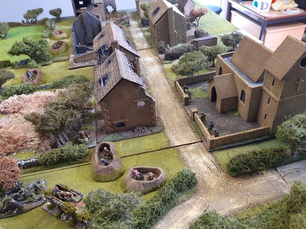 With the loss of all their heavy weapons and the panzer grenadiers the remaining Volkstrum fled the town and the Canadians took control. A good game, plenty of excitement.