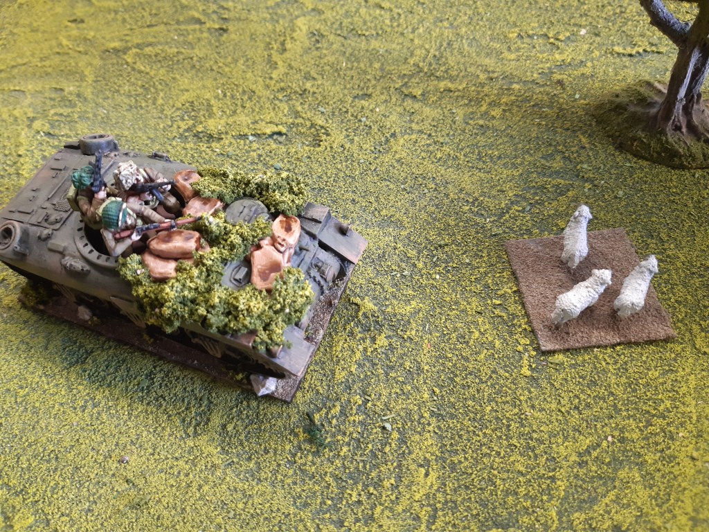The Canadians advanced on a broad front (too broad actually), two sections advancinging right, the Shermans and platoon HQ taking up position on the central high ground and a lone section advancing on the far left.