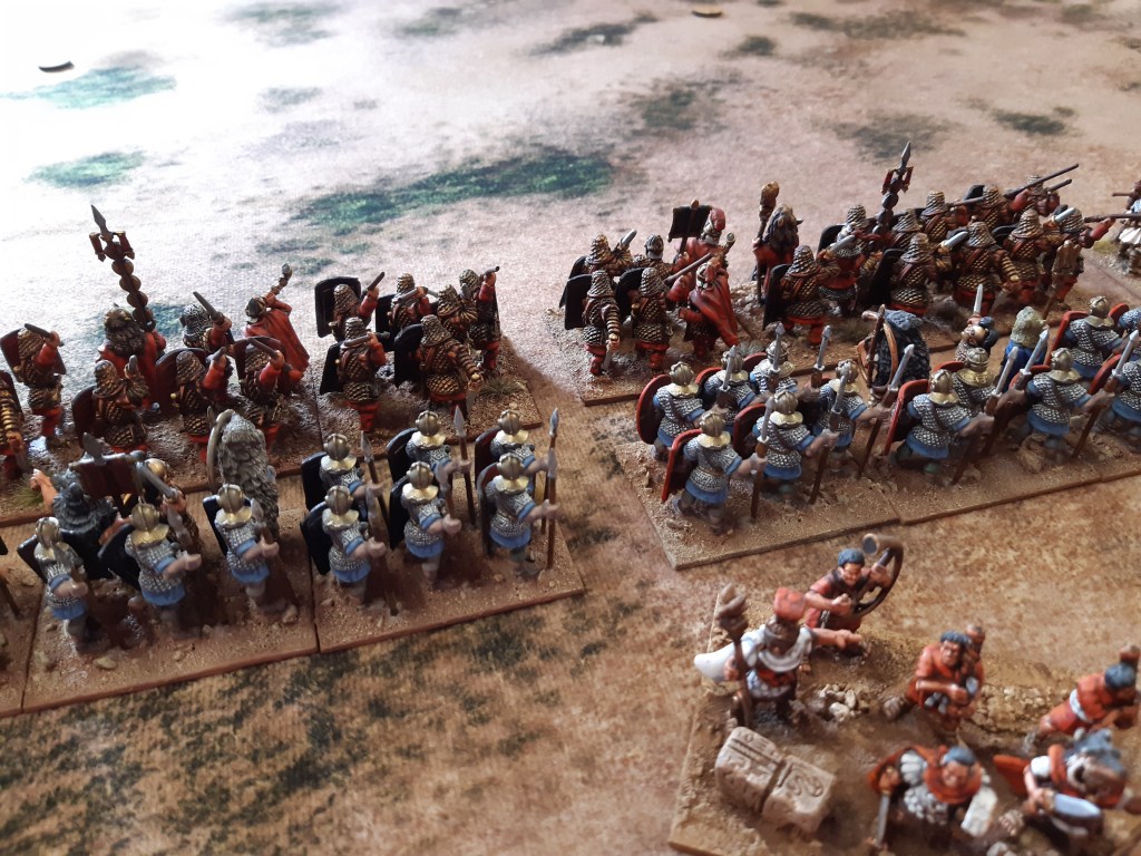 Both sides deployed with a strong cavalry wing which in this case ended up facing each other, a weak centre and then a strong infantry wing battling to control a large hill.