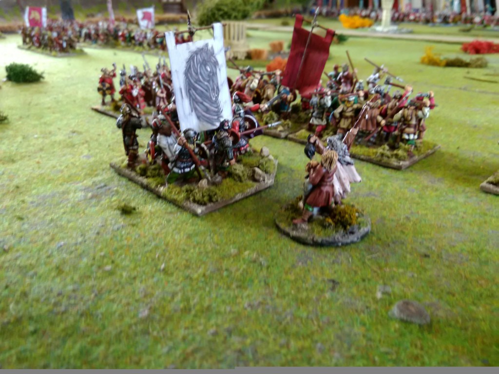 The major event of the game was the death of three commanders in one turn – two were fighting each other with their bodyguards. Not surprisingly this rather tipped the game and the Saxon king fell back with his command begrudgingly leaving the bodies of his two sub commanders with their bodyguards.