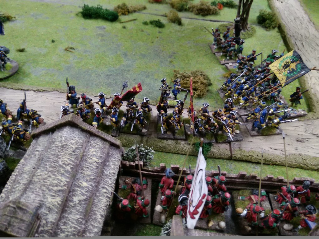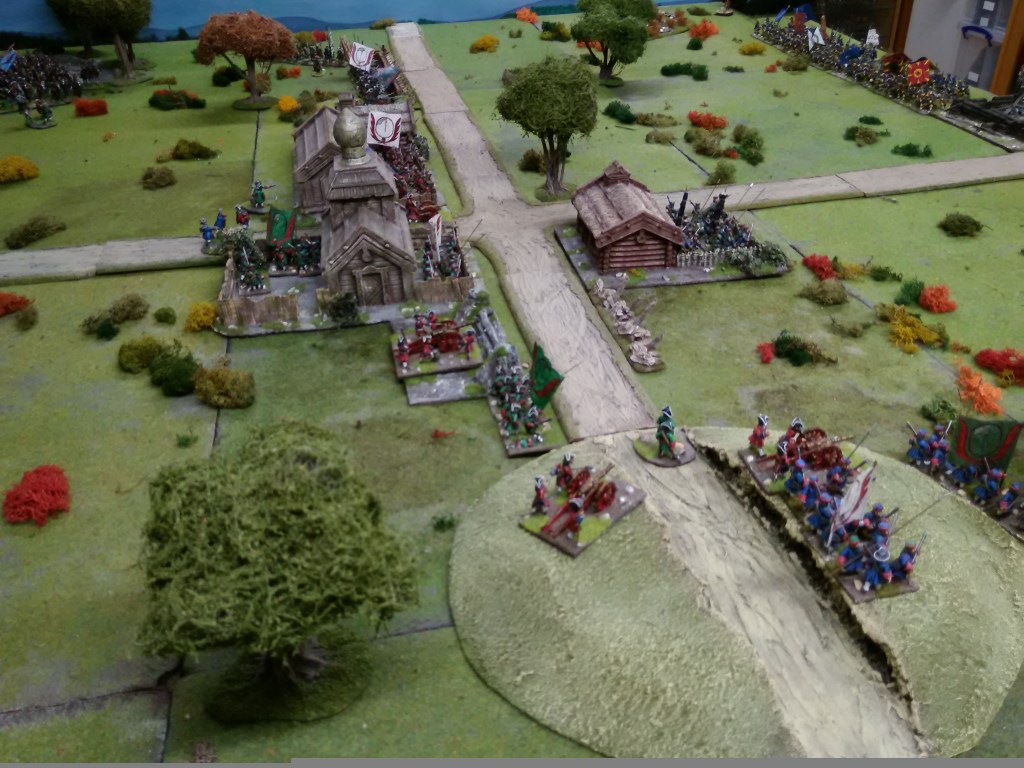 In this fight the Russians kept one brigade of cavalry as a reserve while the other held the right flank. All the infantry were distributed amongst the buildings and defences.
