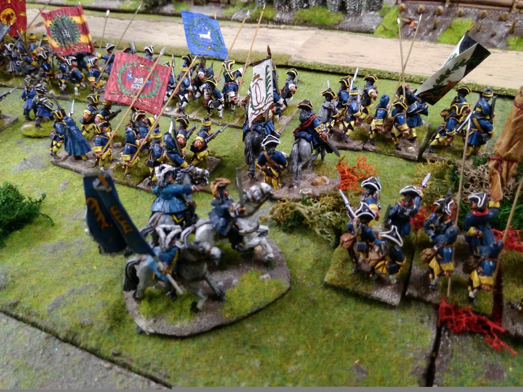 This was a far more even battle. The Swedes certainly saw off the Russian cavalry on the one wing but their own significant losses and fire from artillery and infantry who had turned to face on that flank plus the arrival of the Russian reserve cavalry saw both the Swedish brigades head for home.