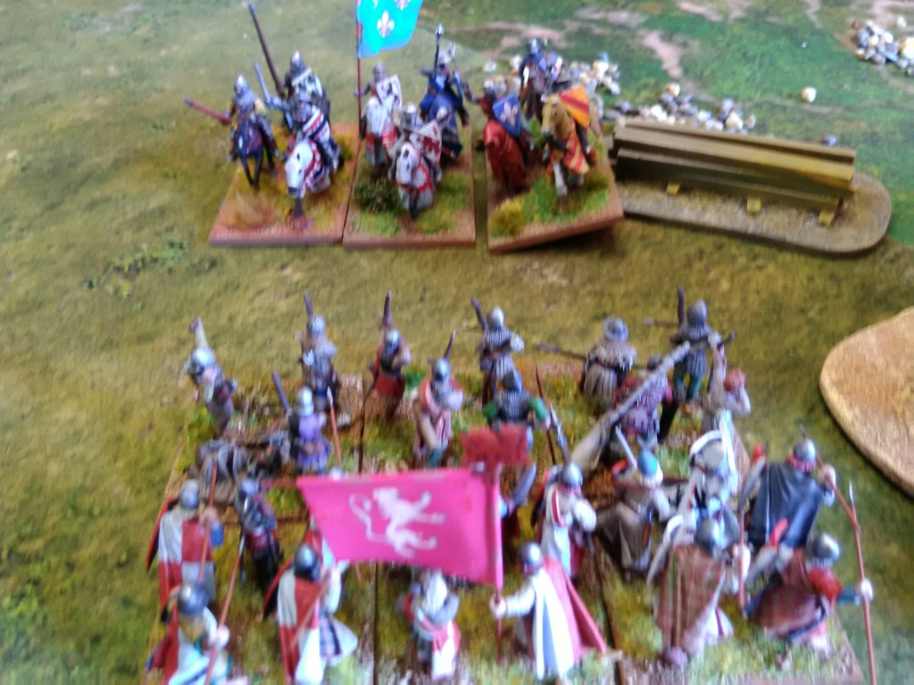 Out where the French landed the English right flank force held them at bay for a while in order for their sole mounted men at arms unit to make a charge but things didn’t go quite according to plan.
