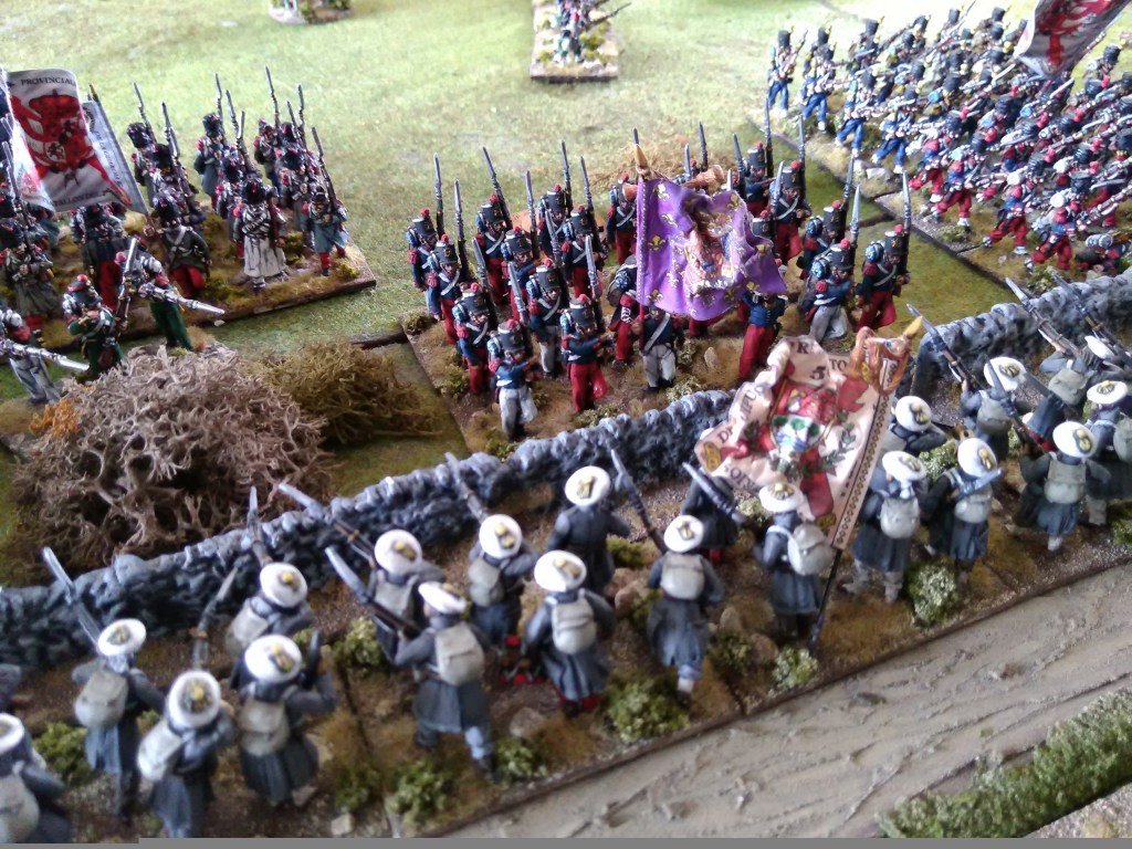 The infantry action took a while to take place but it was violent and bloody when it got going. On the right centre of the Carlist line the protective cover of the walls allowed the poorer quality line to withstand the opening volleys of the attacking Guards and inflict back heavy casualties in return. When it came to crossing bayonets the first line of the Carlists gave way but the untouched second line were able to send the weakened Guards retreating back across the field – oh what a glorious sight 😄