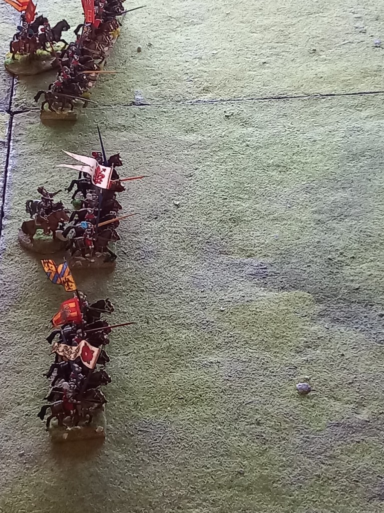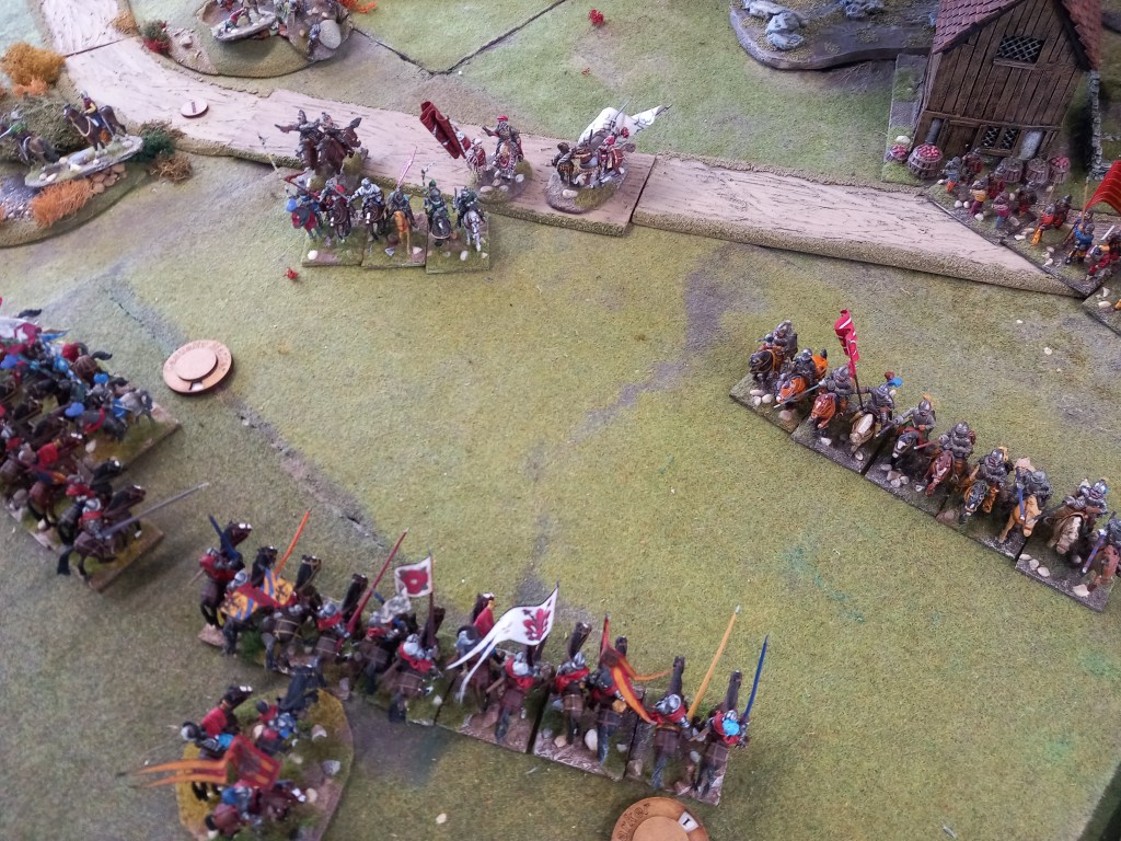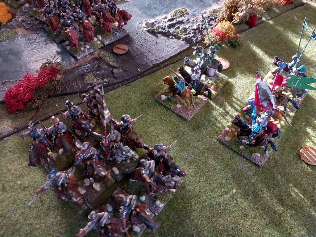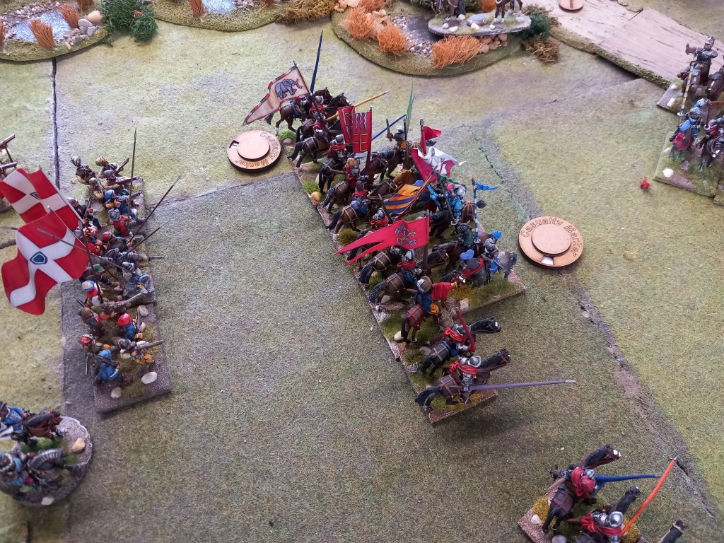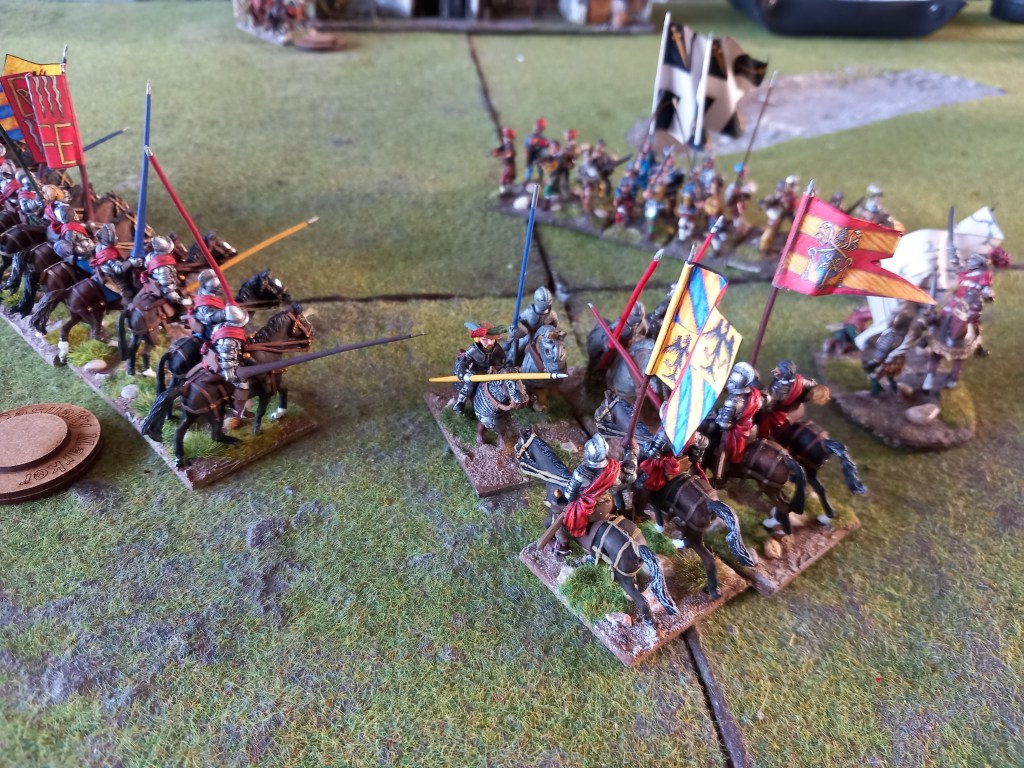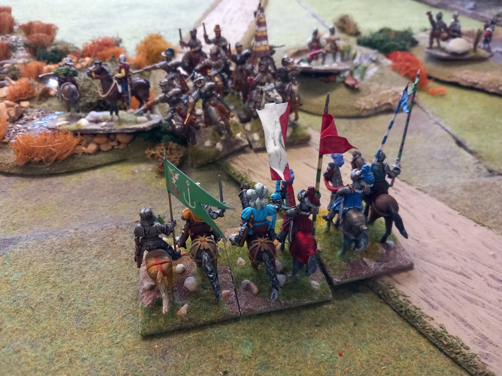The opening moves didn’t go well for the royalists; the Huguenots used some of the enfant perdus defending the ponds to take pot shots at their cavalry and managed to shoot oth Montpensier and d’Anjou out of the saddle essentially halting those units for a brief while and buying the Huguenots time – they were very lucky shots!