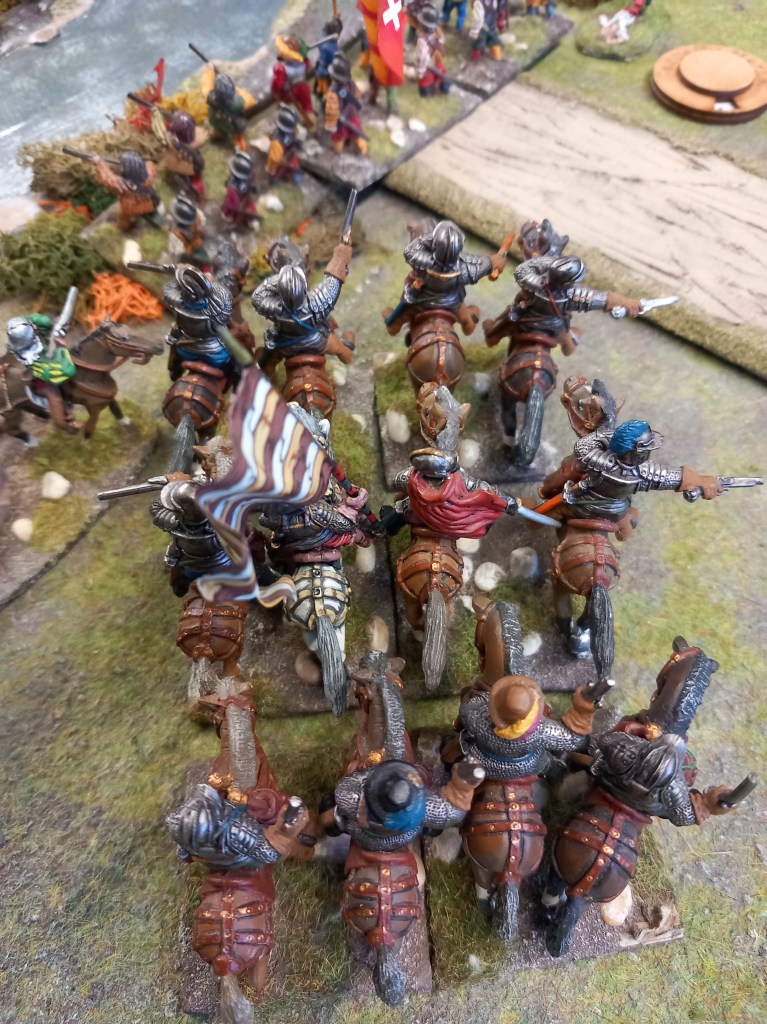 The second (and somewhat reduced) reiters ride forward to be confronted by Coligny’s full regiment. I think we know how this is going to end….