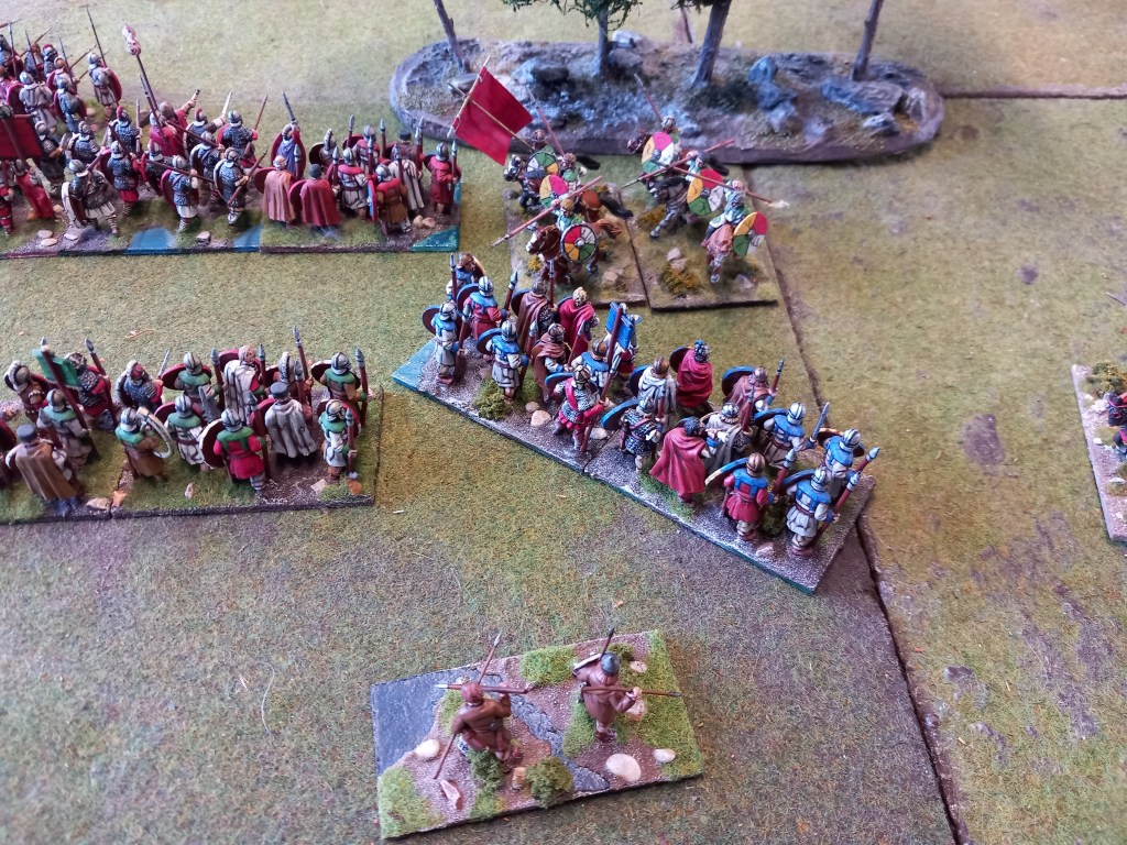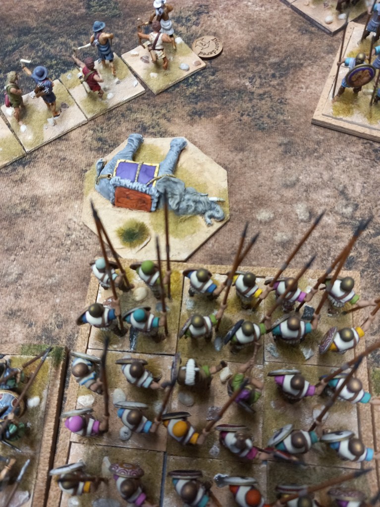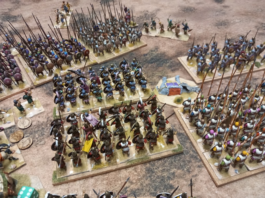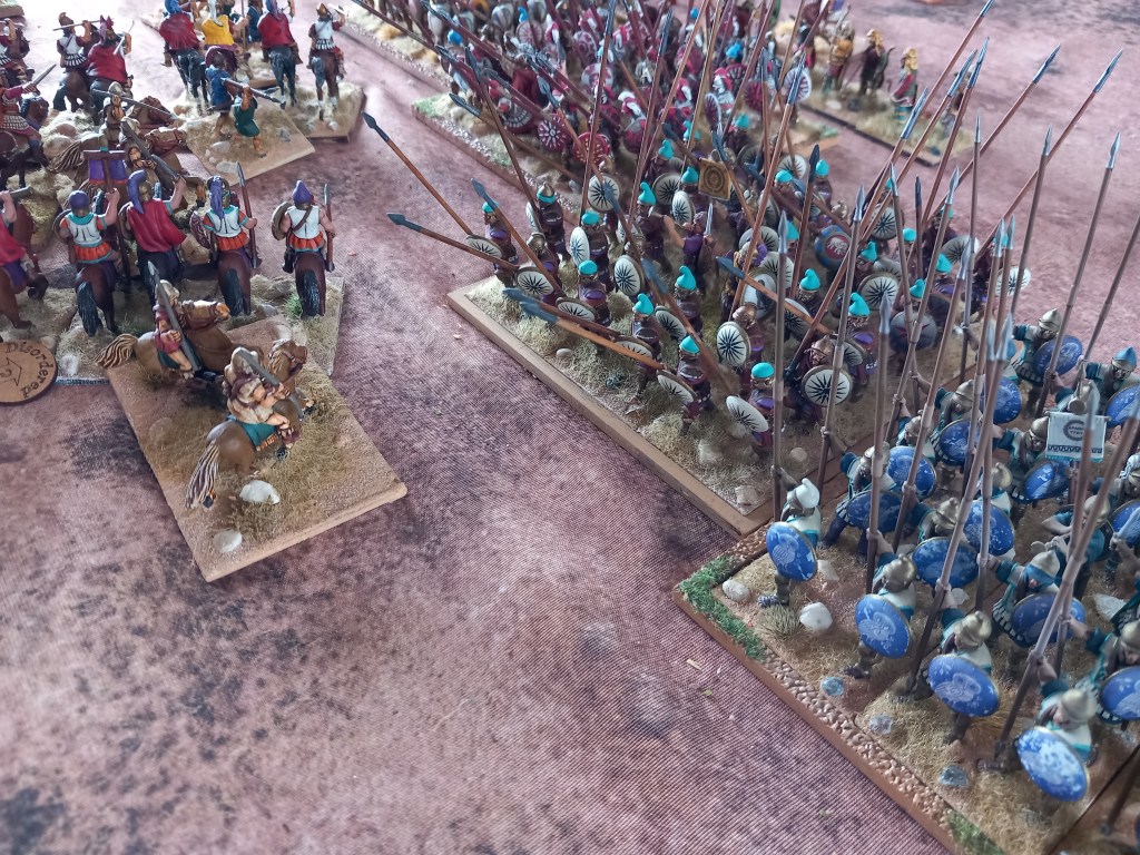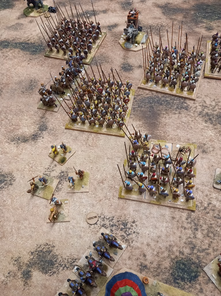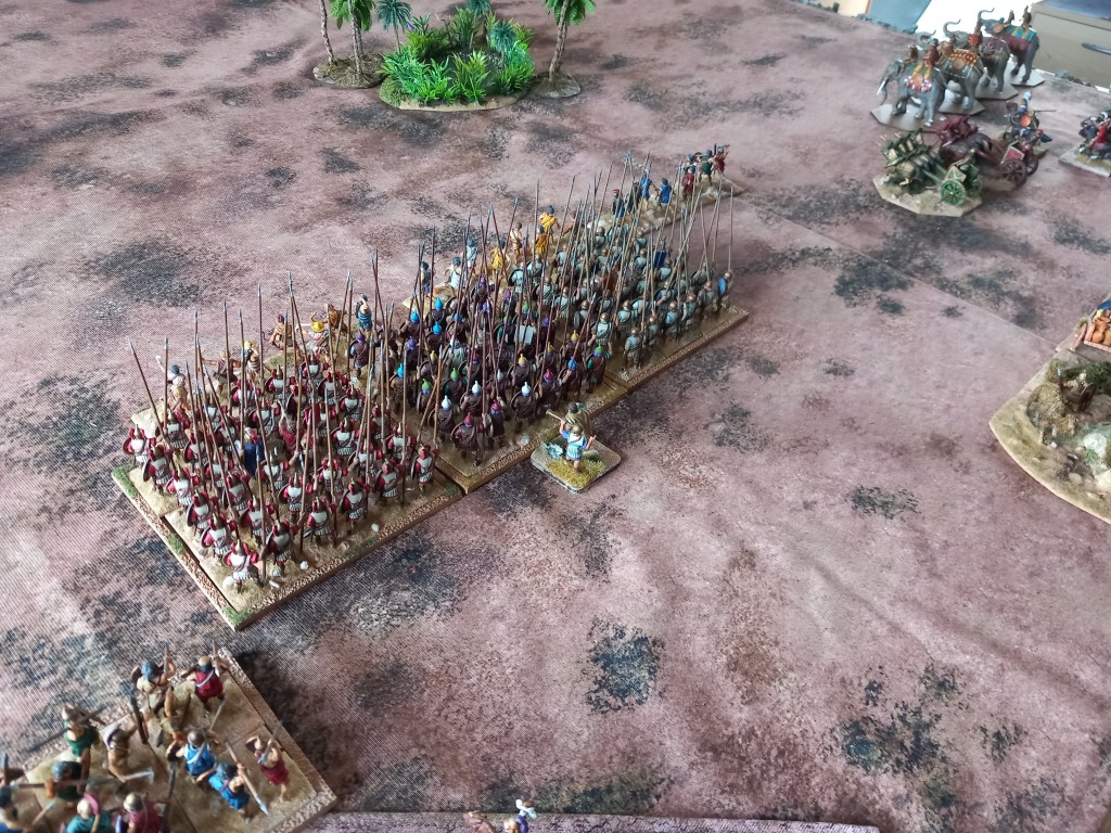 As always the initial action was on the wings where on one flank the Romans killed the elephant and then ran into the veteran pikes and died horribly and on the other where the cavalry on cavalry fight saw the Roman commander killed and that command halt paralysed.