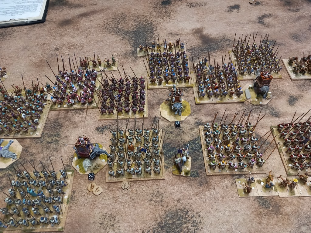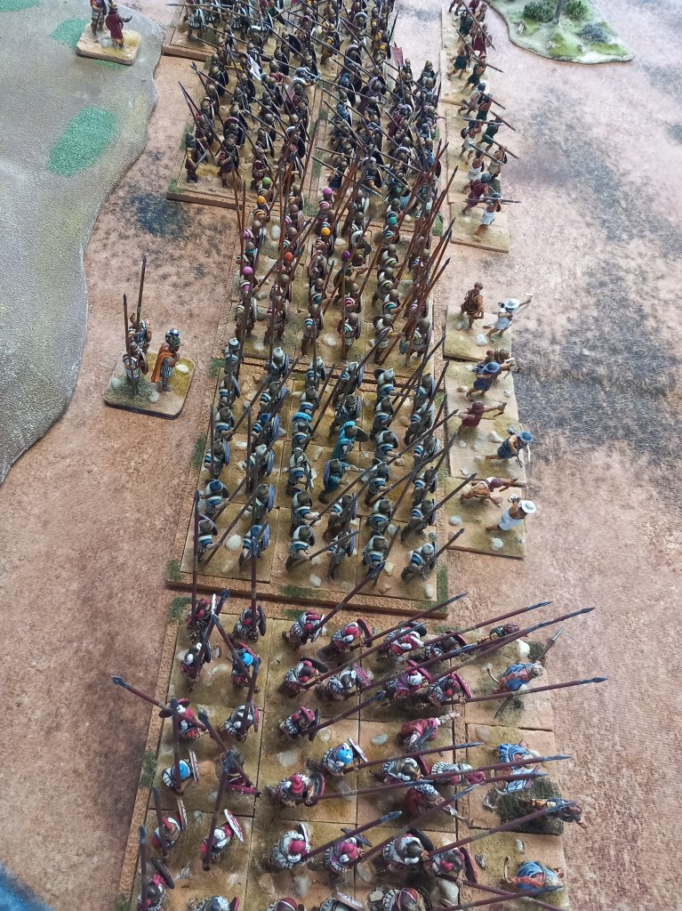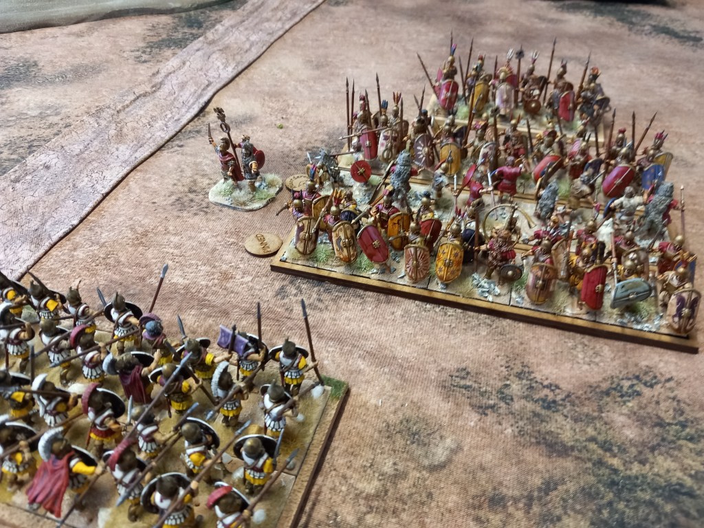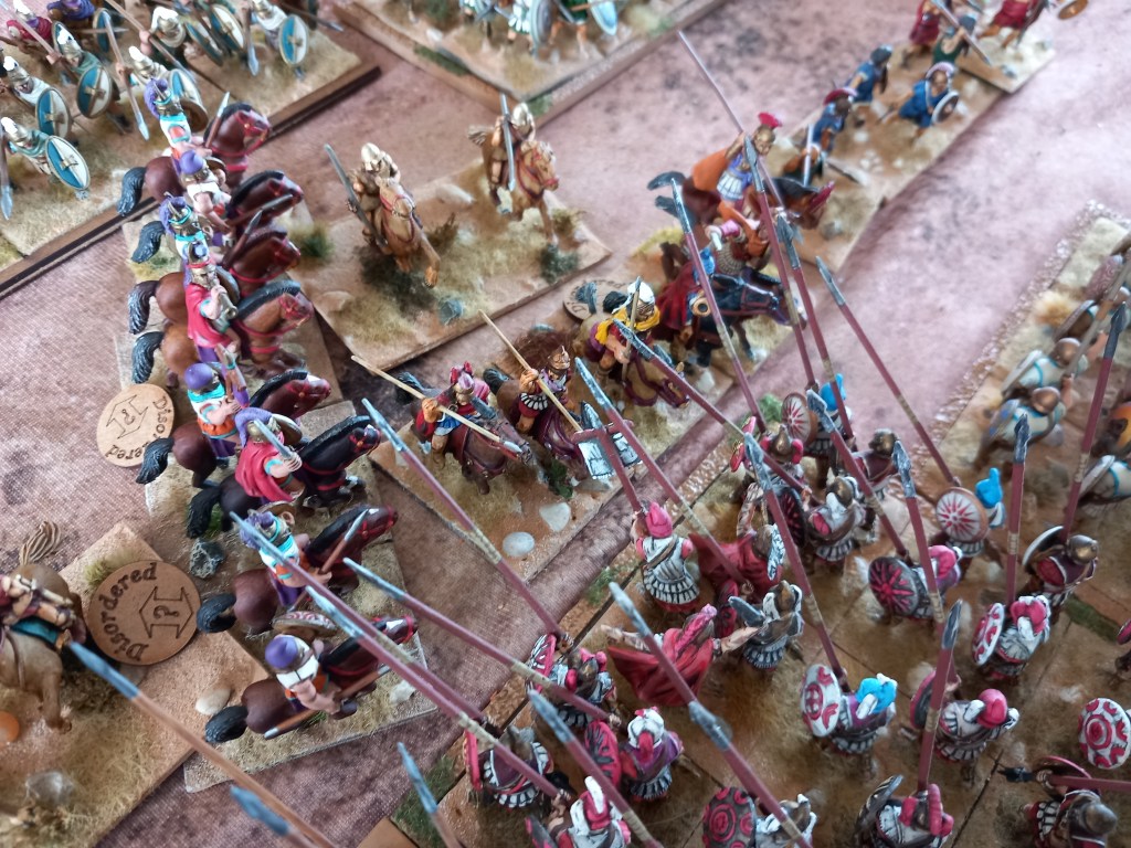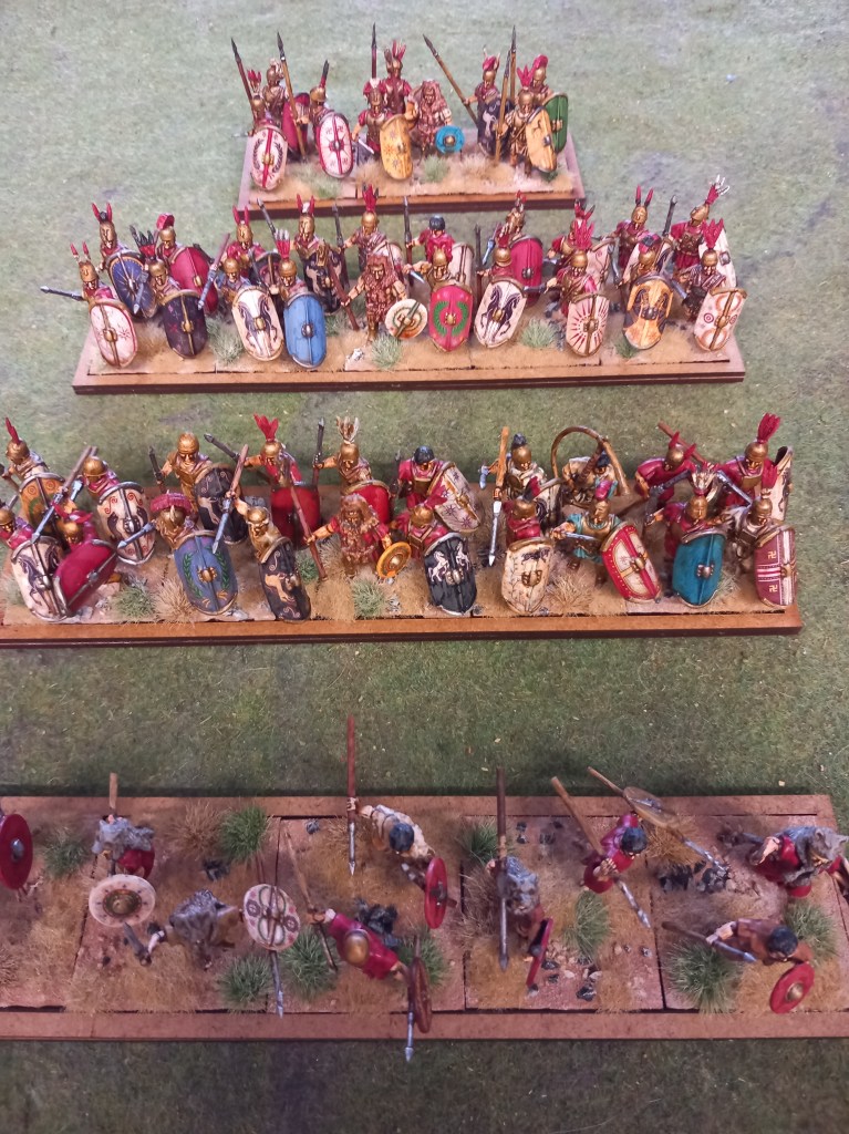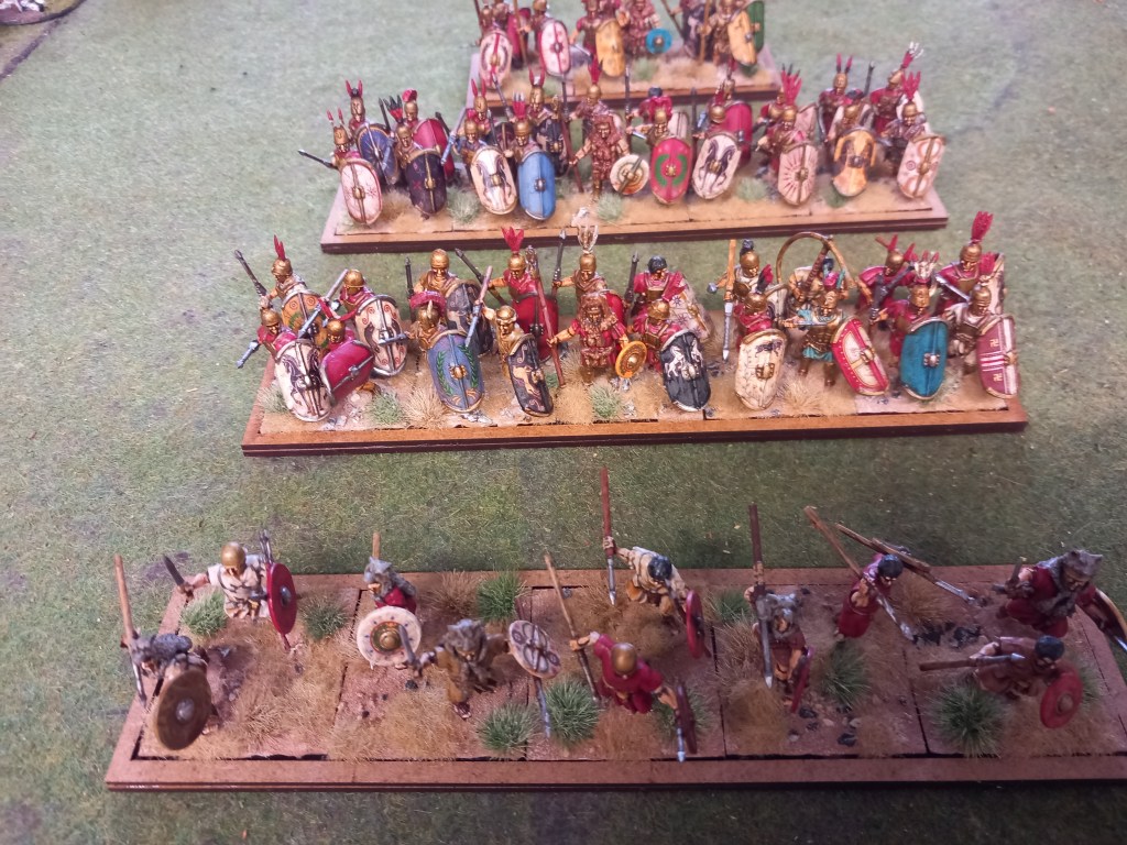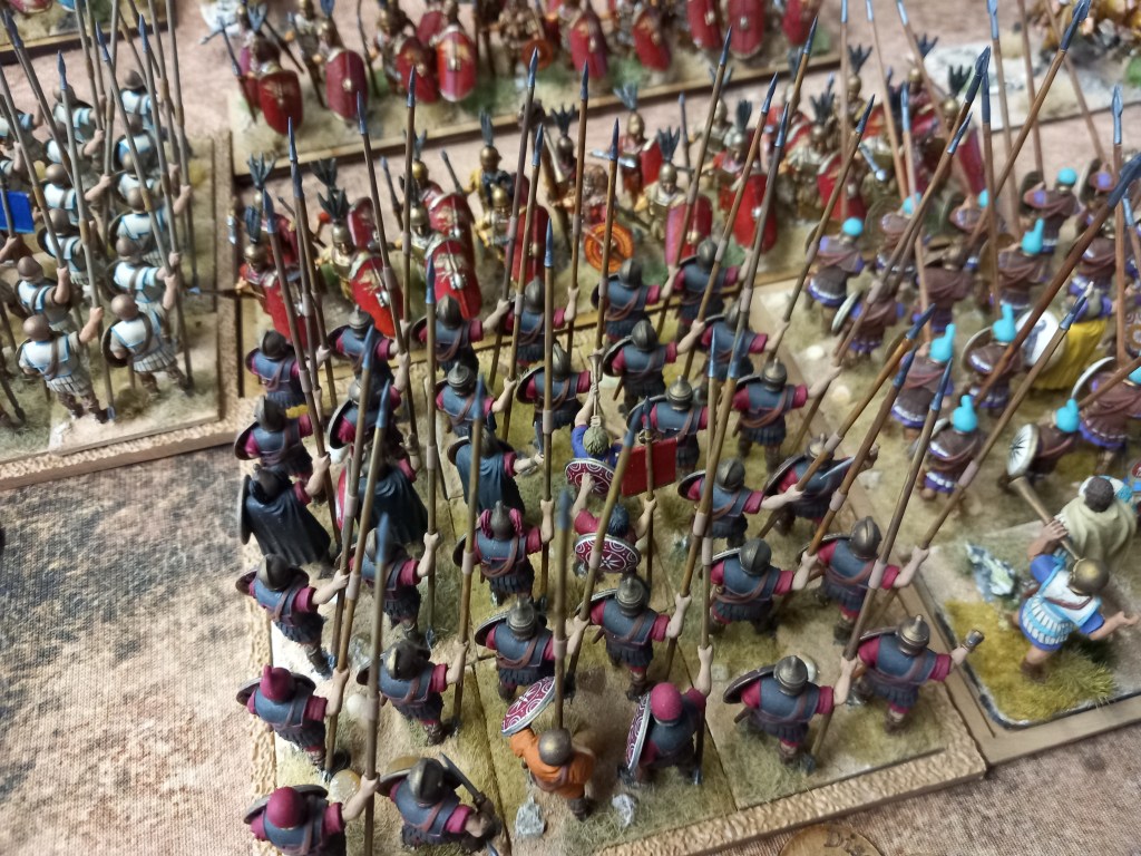 Now there is a bit of a story around this expansion of our period. When I wrote the rules I very specifically avoided taking it to the end of the dynasties at the hands of the Romans because A) it’s another army to do a list for and once you’ve done them do you do Carthaginians, and then…. and B) Republican Romans are notoriously difficult to represent – I’ve never come across a rules set that achieves it satisfactorily unless you go to such a helicopter view that the intricacies just don’t matter. However Dave started painting Romans because “I had some of the plastics knocking around” – what! several hundred plastics just knocking around 🙄