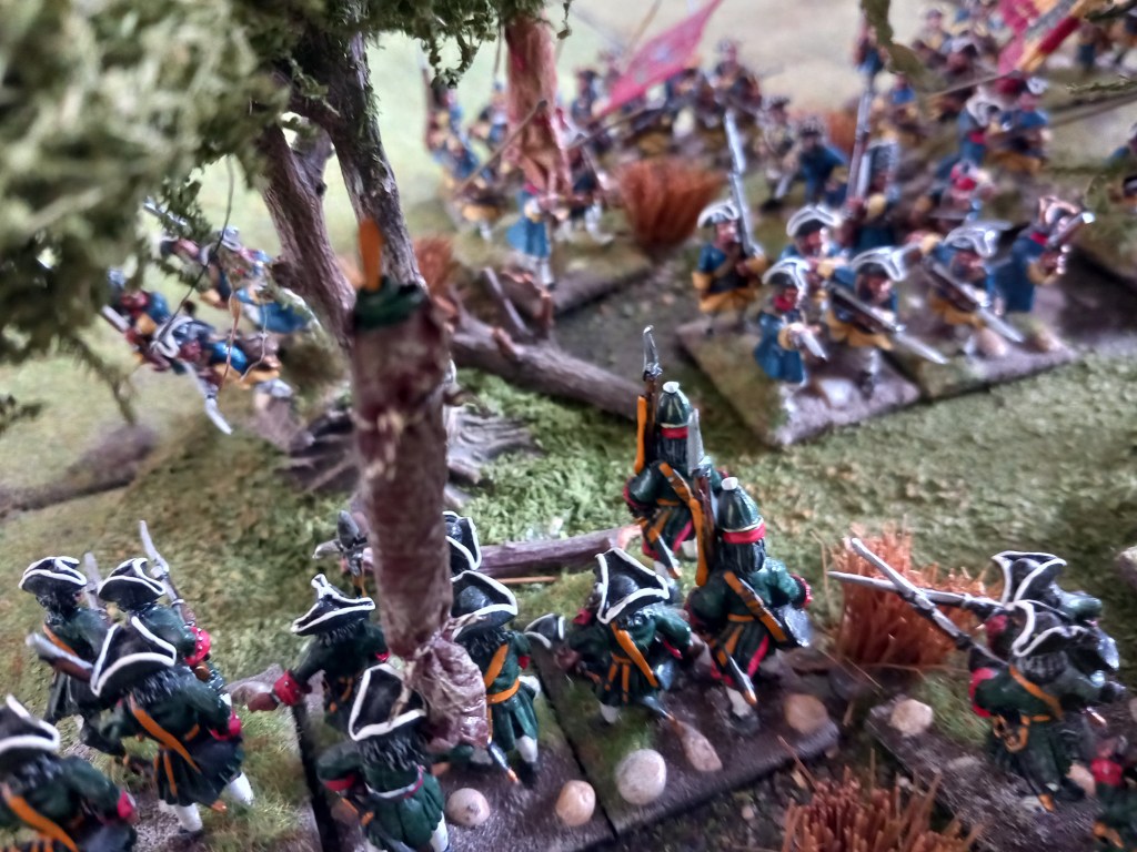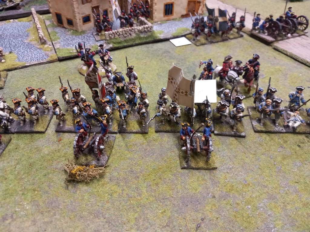 On the Swedish right it was all very historical, the Swedish cavalry pushed on over the ditch and were clearly in the ascendancy but just needed that final push (an extra dice for a commander in the melee). So in went Gustavus and just like that he was dead! The only consolation to the Swedish players was that Holk died in the same melee.