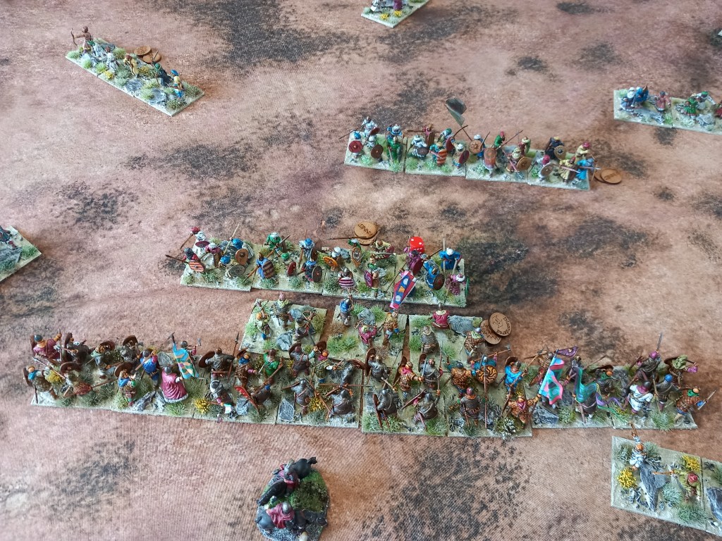 A quirky interlude was an away game with a few of the guys in the wider Coventry area for an ancient skirmish game using the one hour wargame rules published by Helion (I think). Probably the worst set of rules I have ever played in my wargaming life and that is a long time. A deck of cards a few figures; everything decided by the random draw of a card from the deck, no period atmosphere, no skill, no fun.