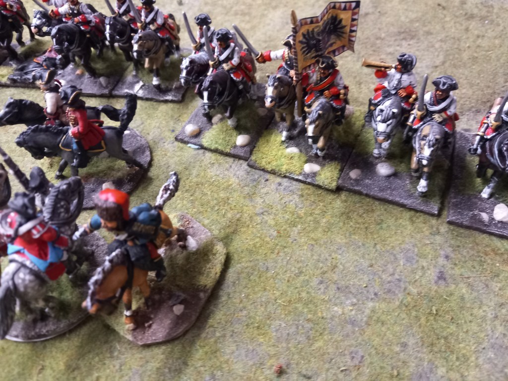 I’m really not sure what I think of the rules. On the plus side it’s not often you can fight a battle like Lutzen to a close in a few hours and come away thinking “well that seemed something like the history” and it not have been a massive headache inducing exercise. Also when standing back there was an element of looking at those C17th engravings that accompanied so many early publications on the period. On the negative side it did feel a bit artificial, almost like a board game, all the units look and act the same, there is no visible reduction in strength because there is no concept of figure removal and it is somewhat mechanistic. I realise of course that a lot of that is to do with my wargaming journey, I’ve always played 25/28mm (big and small games), figure removal is very much a part of that tradition and in most of those games you are down with the troops and not looking above them. That said I would like to play more of the period using the rules and just try and get over my prejudices.