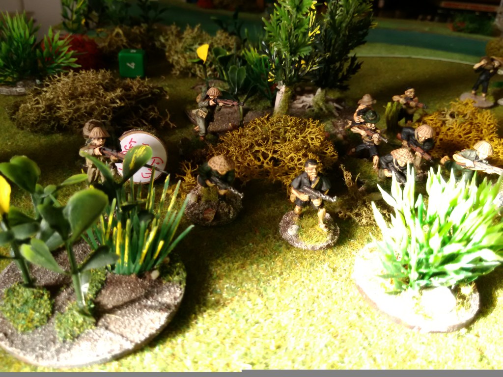 The Viet Minh were a Bo Dai platoon from Regiment 120 operating in the area and consisted of, a small HQ element (3 men including an RPG), the 1st & 2nd Assault squads (around 12 men, mainly small arms) and one Support squad (essentially two lmg teams), team leaders were all Veteran and the rest varied from Cadre to Conscript representing the spread of experience.