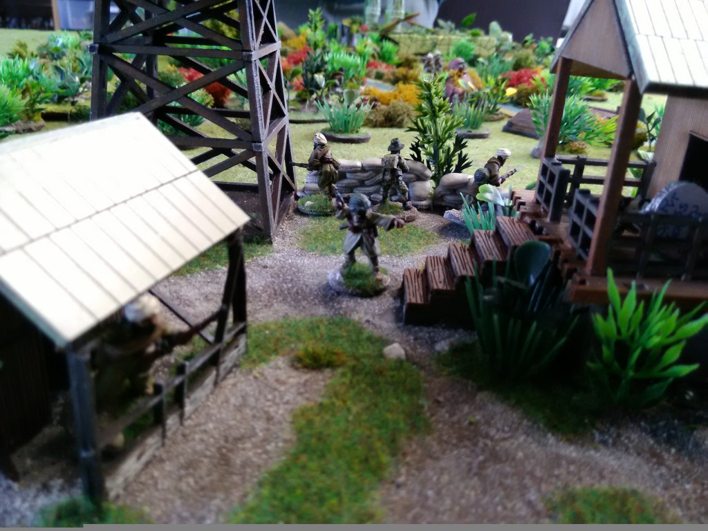 First to open the ball was the 1st Assault Squad who didn’t wait for the RPG to hit the tower (what is that saying about plans and first contact?) and blazed away at the Legion compound to absolutely no effect 😒. Not to be outdone in the failure stakes the HQ section did indeed get off the RPG shot (after the shooting started🙄) but completely missed and then scuttled back into the jungle realising that they were few and the Legion were many. The 2nd Assault Squad were next to open fire and did a little better, downing Driss Menou in the compound necessitating first aid